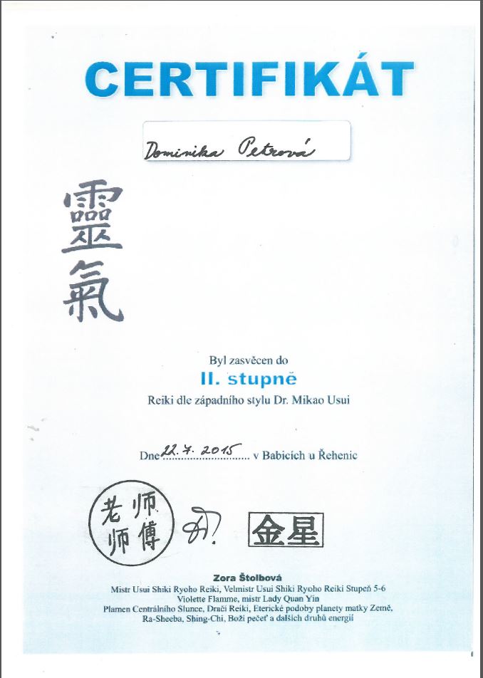 s pojmem reiki jsem se v duchovních kruzích setkávala často a věděla jsem o co jde, přesto mě to do určité doby tolik nepřitahovalo .. až jednou, když mě kamarád Robi (Robi děkuji Ti) masíroval a reikoval v meditačním centru v Lažánkách a poradil mi, ať reiki zkusím, protože mám silné čakry rukou, jsem se o reiki začala zajímat víc ... nahoře to zařídili, abych se přes brigádu v anglické družině a ženu, která ji vedla, dostala k Zorce Štolbové a ta mě do reiki prvního stupně zasvětila ... v tomto směru jsem úplný nováček a těším se, co mi reiki do života přinese ... v nejbližší době plánuji zasvěcení do II. a III. stupně